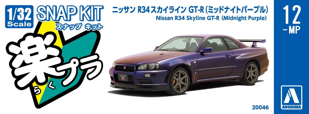 AOSHIMA - 1/32 - NISSAN R34 SKYLINE GT-R (MIDNIGHT PURPLE III) - SNAP KIT 12-MP est catégorisé dans MAQUETTES À ASSEMBLER / MAQUETTE DE VÉHICULES À CONSTRUIRE / VÉHICULES CIVILS en vente chez l'Imaginaire, un magasin-boutique et un site web spécialisé.