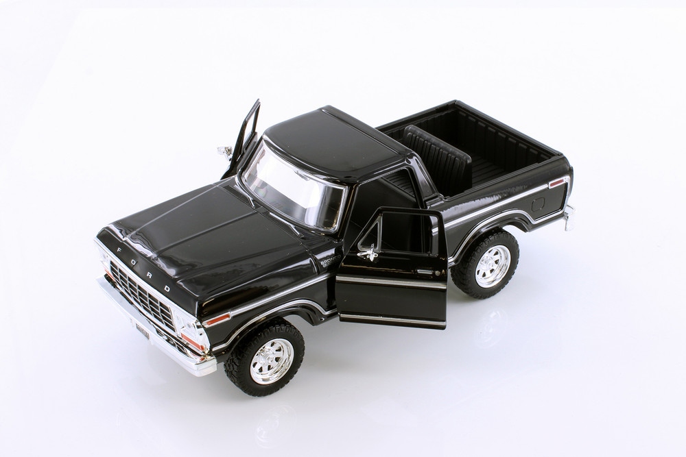 Regardez ce VUS miniature de Motor Max ! Ce Ford Bronco Custom de 1978 est une réplique à l'échelle 1/24. De couleur noir, il est équipé de portes ouvrantes, d'un intérieur et d'un extérieur détaillés et d'un système de roues libres. C'est un super véhicule pour toute collection de VUS et un vrai régal pour les fans de Ford !