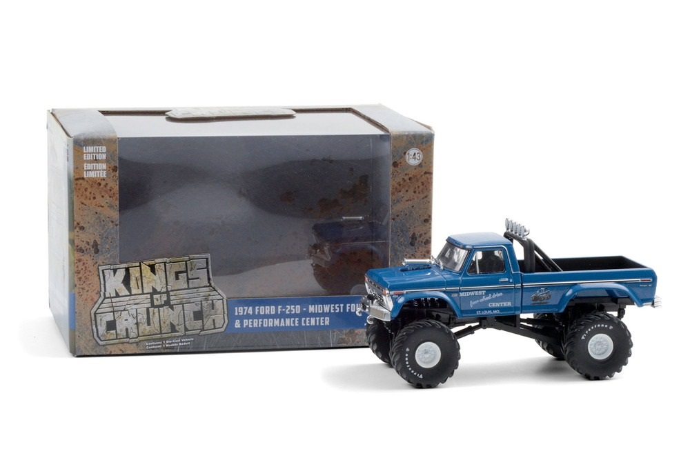 FORD  -  KINGS OF CRUNCH  -  FORD F-250 MONSTER TRUCK 1974, BLEU MIDWEST AND PERFORMANCE CENTER - 1/43
