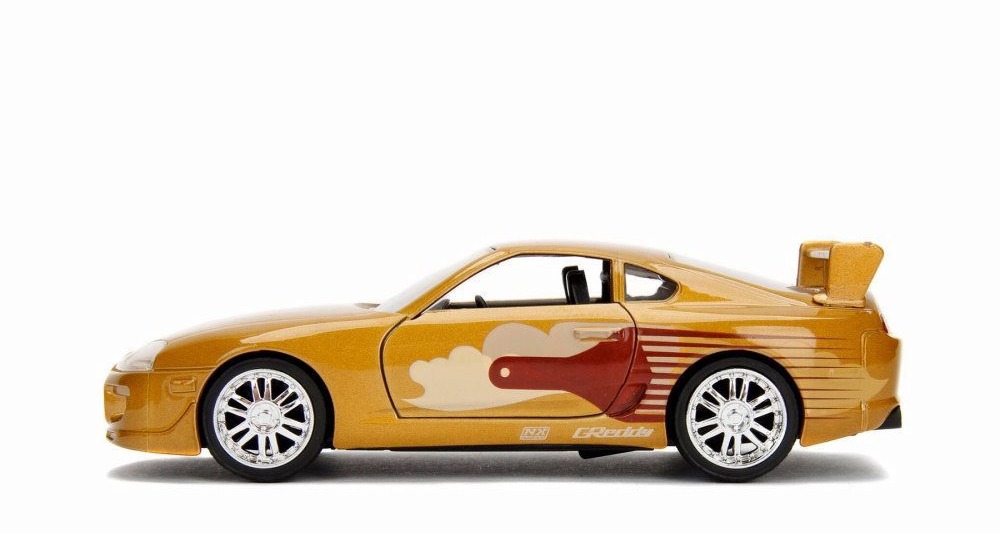 Faites des envieux avec cette voiture de cinéma légendaire signée Jada ! Cette Toyota Supra Hard Top est une réplique en métal moulé à l’échelle 1/32. Présentée en doré, elle dispose de portières ouvrantes ainsi que d’un intérieur et d’un extérieur détaillés. C’est un choix magnifique pour toute collection de voitures de films, et un incontournable pour les passionnés de Toyota !