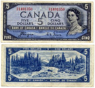 1954 - VISAGE DU DIABLE - 5 DOLLARS 1954, COYNE/TOWERS PRÉFIXES A/C - B/C est catégorisé dans MONNAIES ET BILLETS / BILLETS DU CANADA / 1954 VISAGE DU DIABLE en vente chez l'Imaginaire, un magasin-boutique et un site web spécialisé.