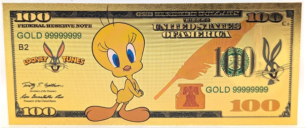 BILLETS HUMORISTIQUES - LOONEY TUNES : TITI - BILLET DE 100 DOLLARS DES ÉTATS-UNIS (PLAQUÉ EN OR PUR)