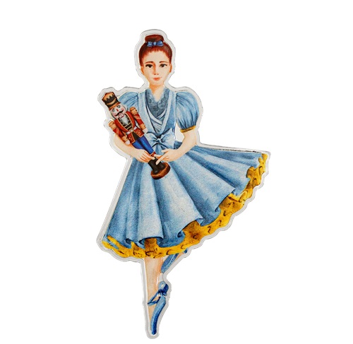 Casse-Noisette est un ballet en deux actes incontournable des Fêtes, dont la chorégraphie originale de Marius Petipa et de Lev Ivanov est accompagnée de la musique de Pyotr Ilyich Tchaïkovski. Armée de son courage et de son intelligence, Clara, l’héroïne de ce ballet, aide Casse-Noisette, un jouet vivant de taille humaine, à vaincre le terrible roi des souris et son armée. Retrouvez toute sa grâce et sa détermination sur cette pièce de 1 oz en argent pur ayant cours légal. Agrémentée de couleurs vives et offerte dans une capsule à suspendre, cette pièce fera un cadeau mémorable ou une décoration d’exception pour votre sapin.