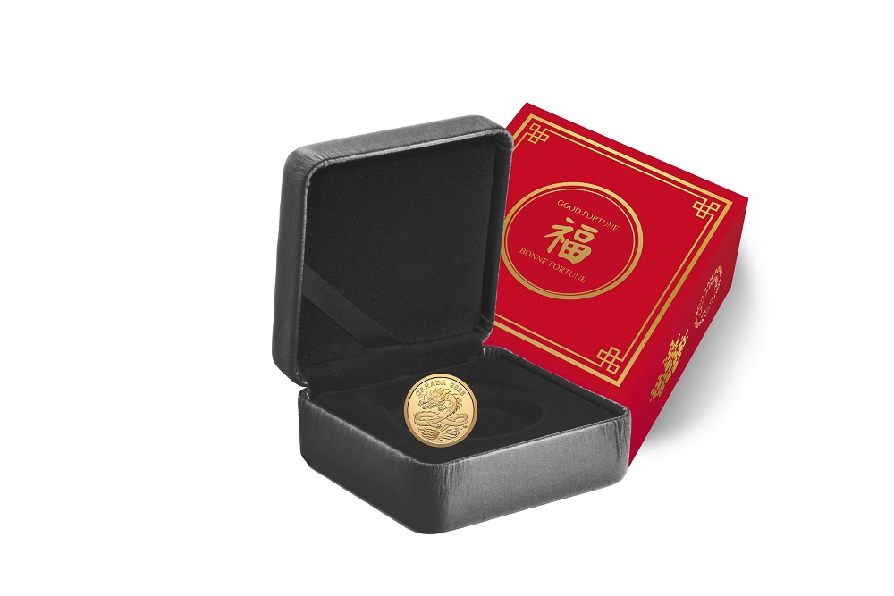 Frappée de façon experte dans 1/20 oz d’or pur à 99,99 %, cette pièce de la Monnaie royale canadienne au petit format (14,1 mm) abordable regorge de détails. Au revers, le dragon finement détaillé est une représentation captivante de pouvoir, de force et de bonne fortune – d’autant plus que son corps serpentin s’enroule pour former un huit, symbole de chance infinie. Également ornée de vagues évoquant la prospérité et la joie, cette petite pièce pourrait marquer le coup d’envoi d’une année remplie de nouvelles possibilités.