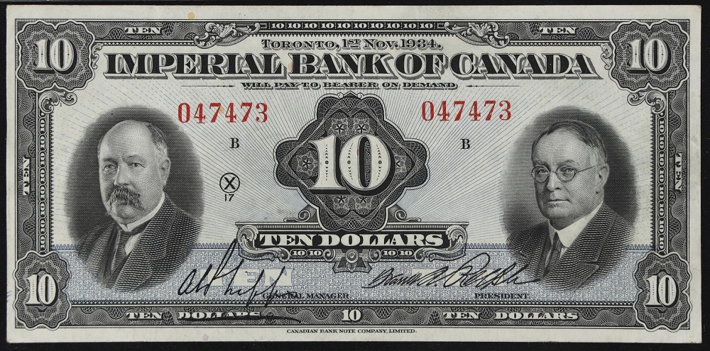 IMPERIAL BANK OF CANADA  -  BILLETS DU CANADA 1934  -  10 DOLLARS 1934