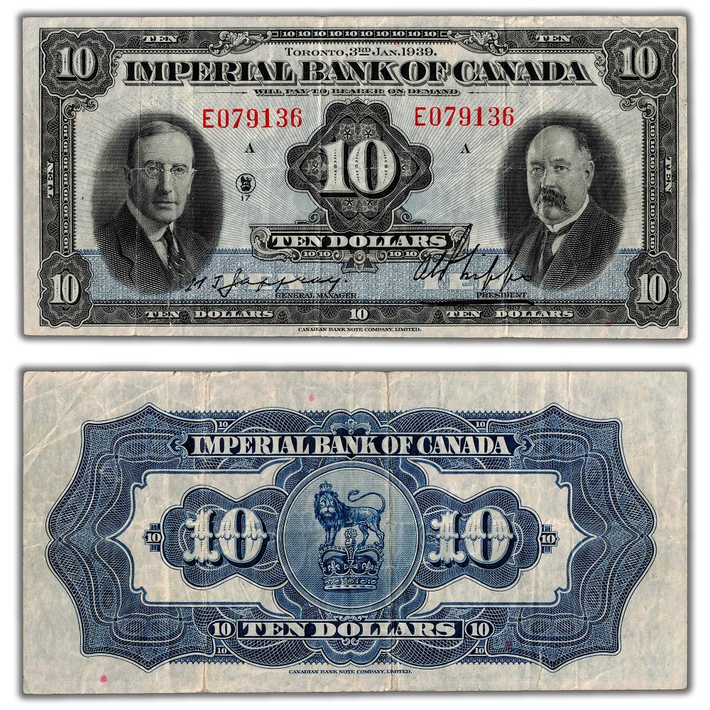 IMPERIAL BANK OF CANADA  -  BILLETS DU CANADA 1939  -  10 DOLLARS 1939