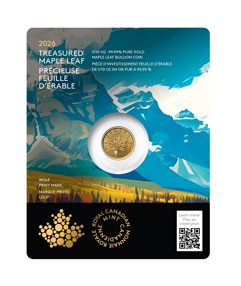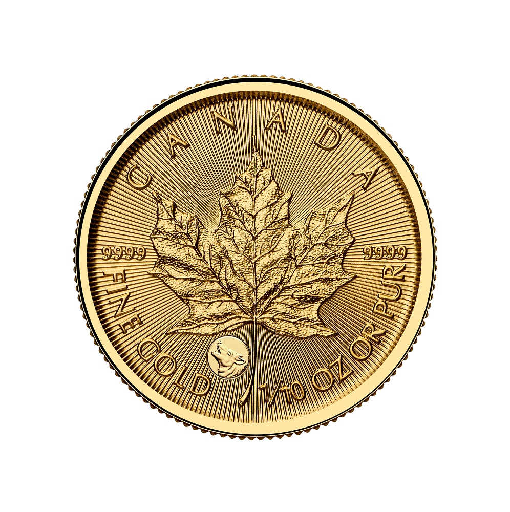 PRÉCIEUSES FEUILLES D'ÉRABLE EN OR (ANIMAUX) - PIÈCES DU CANADA 2026 # 02 - PRÉCIEUSE FEUILLE D'ÉRABLE EN OR : MARQUE PRIVÉE DU LOUP - 1/10 ONCE EN OR PUR