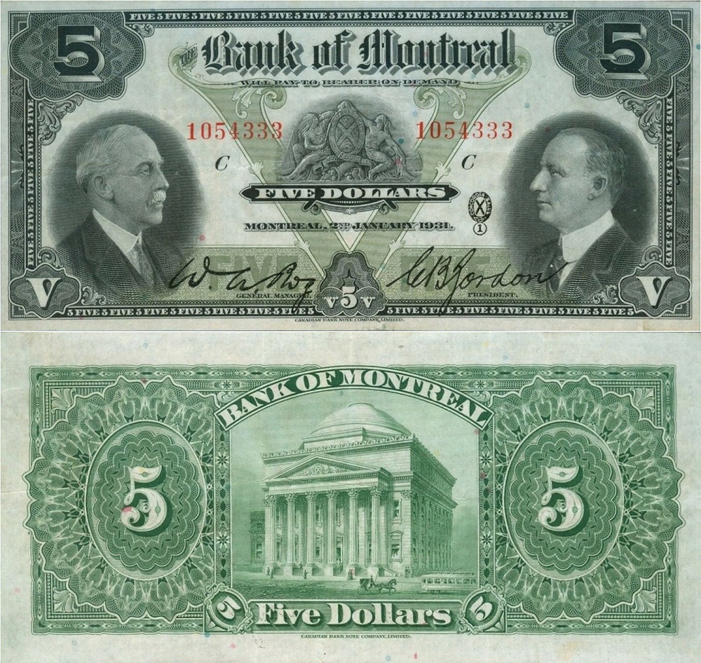 THE BANK OF MONTREAL - BILLETS DU CANADA 1931 - 5 DOLLARS 1931 (F)