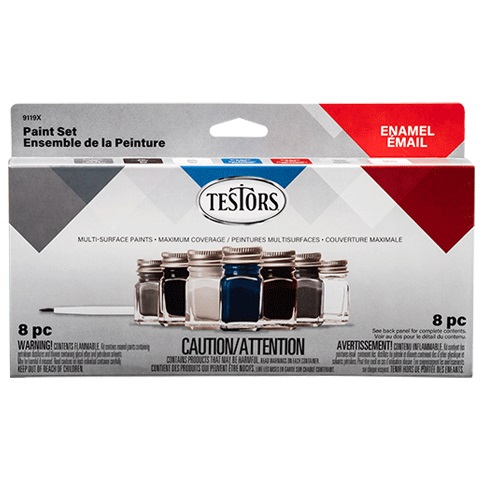 TESTORS - ENSEMBLE DE PEINTURE ÉMAIL (5 COULEURS, DILUANT, APPRET ET PINCEAU)