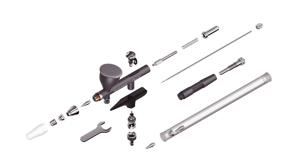 Son design simple et rationnel le rend extrêmement facile à nettoyer, qu'il s'agisse d'un simple nettoyage pour changer la peinture du modèle ou d'un nettoyage complet des éléments et pièces de l'aérographe.
