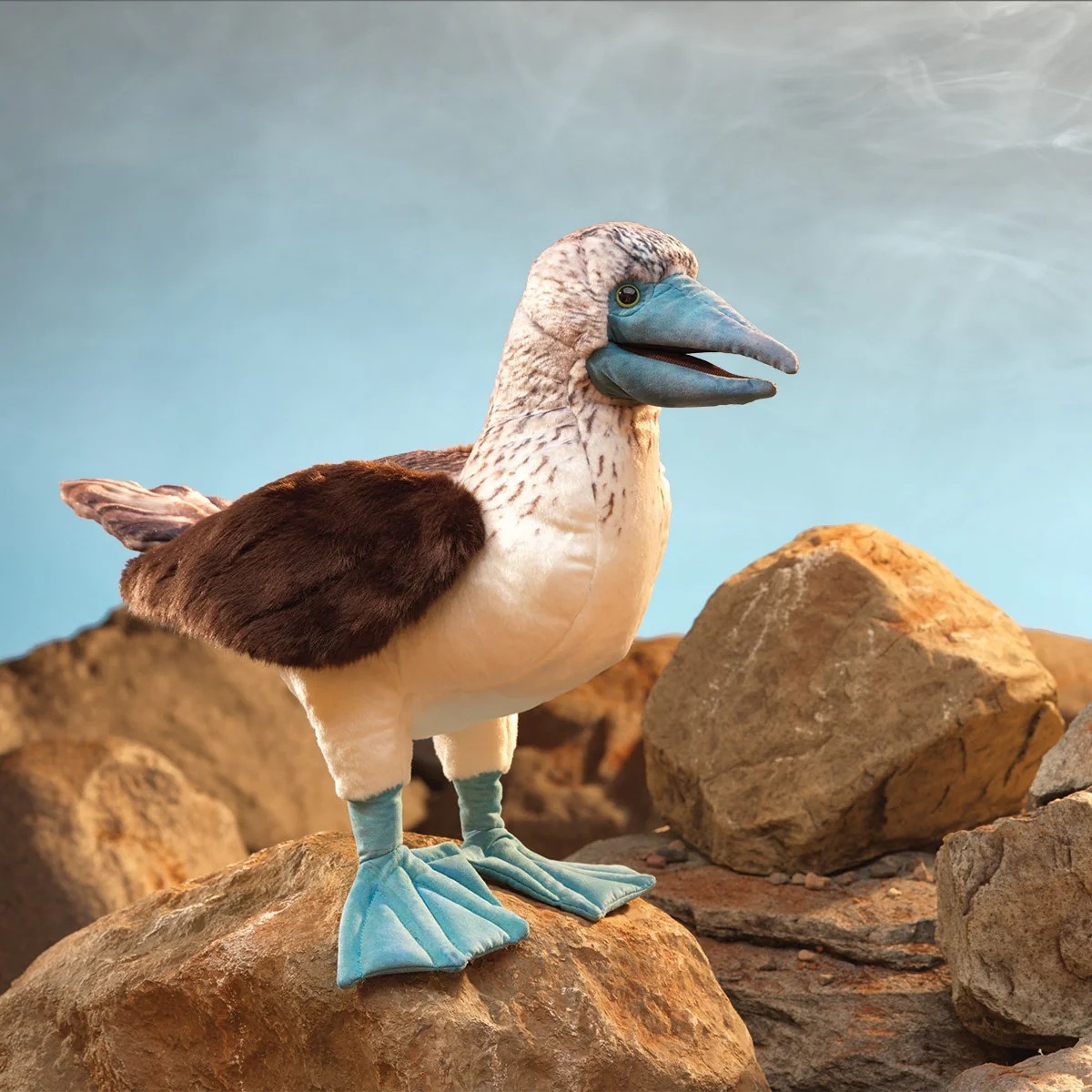 Le bobby aux pattes bleues se distingue dans la nature grâce à ses pattes aux couleurs vives, qu’il met en mouvement dans une danse comique pendant la saison des amours. Son nom vient du mot espagnol « bobo », qui signifie idiot ou farfelu. Ces oiseaux marins côtiers d’Amérique du Sud sont apprivoisés avec les humains, mais ignorent les autres dangers possibles. Faites bouger le bec et les poches pour les pattes de cette marionnette en velours doux pour découvrir le caractère unique de cette créature.