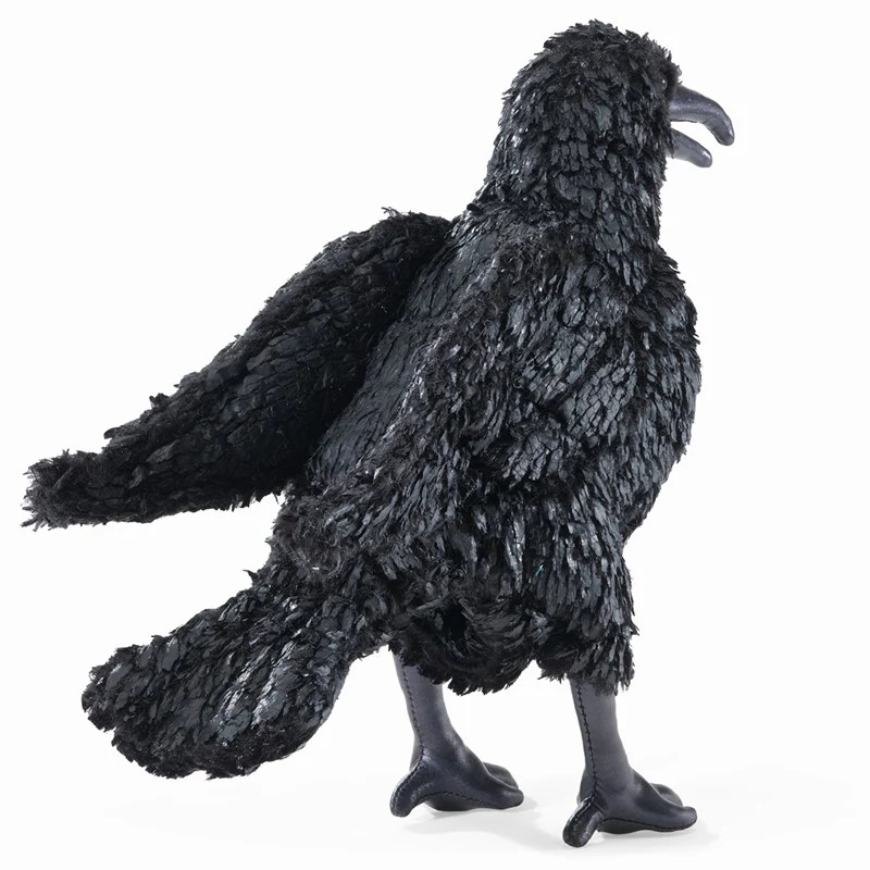 L’emblématique corbeau noir joue souvent le rôle du farceur dans de nombreuses histoires et contes populaires. Ce corvidé intelligent est parfaitement représenté avec la marionnette Corbeau Folkmanis. Avec sa silhouette classique en peluche noire soyeuse, son bec mobile et ses pattes brillantes, cette marionnette trompe l’œil et donne l’illusion d’un véritable oiseau vivant.