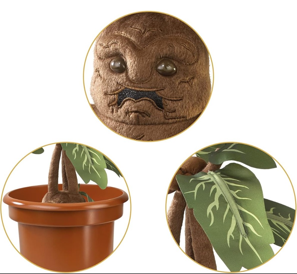 Cette peluche interactive électronique de mandragore pousse des cris et des hurlements lorsqu’on la tire vers le haut, et (heureusement) se calme une fois replacée dans son pot.