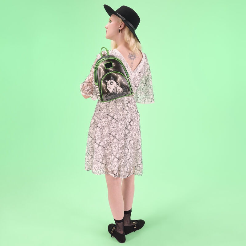 Ce mini sac à dos arbore le personnage adoré de Sparky sur le devant, entouré d'éclairs phosphorescents ! Vous y trouverez d'autres détails soignés comme des paillettes, des broderies et un similicuir texturé. C'est l'accessoire parfait pour compléter votre tenue d'Halloween !