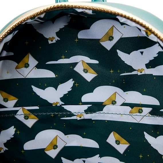 Suivez la chouette dorée "à la lettre" avec ce mini sac à dos Loungefly Harry Potter – Château de Poudlard doré. Sur le devant, le château de l’école de sorcellerie de Poudlard prend vie grâce à de superbes détails en feuille dorée, ses tours se dressant sous un ciel étoilé. En dessous, une poche en forme d’enveloppe fonctionnelle avec un sceau en appliqué ajoute une touche magique, tandis qu’un charm en émail doré représentant une chouette complète le design. Au dos, vous trouverez les logos des quatre maisons — Gryffondor, Serdaigle, Serpentard et Poufsouffle — dessinés en contour doré. C’est l’accessoire idéal pour répondre à une invitation à Poudlard… ou transformer vos sorties quotidiennes en aventures ensorcelantes.