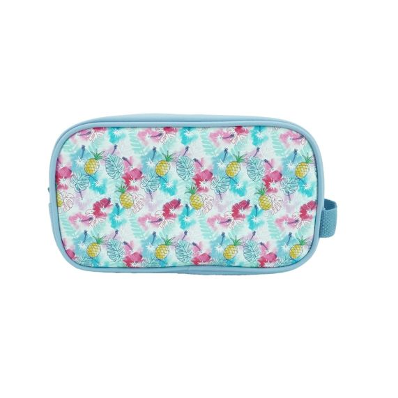 Avec des motifs sur le thème de l’ananas, elle allie fun et fonctionnalité. Facile à transporter grâce à sa anse en sangle robuste, elle comprend deux compartiments spacieux pour organiser vos articles de toilette, >