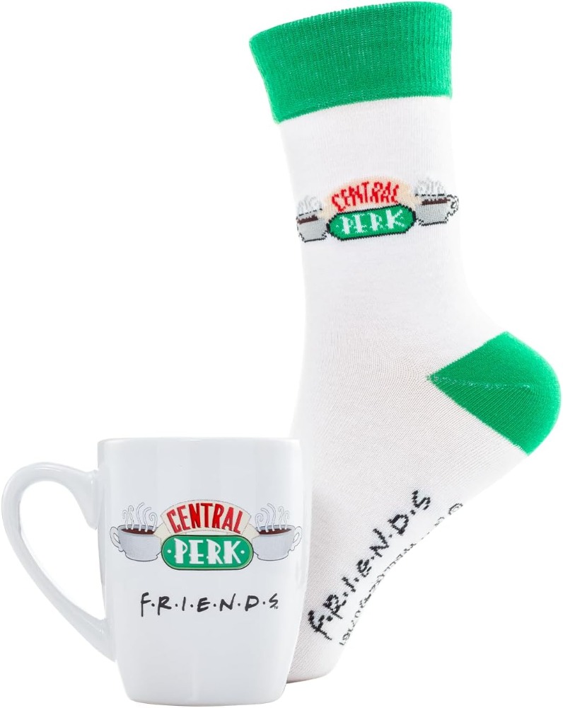 Profitez d’un moment café chaleureux avec cet ensemble cadeau Friends Central Perk ! Comprend une tasse durable adaptée au micro-ondes et des chaussettes confortables de taille standard pour femme, parfaites pour savourer votre boisson préférée tout en revivant les moments cultes de la série. Un cadeau incontournable pour tout fan de Friends.