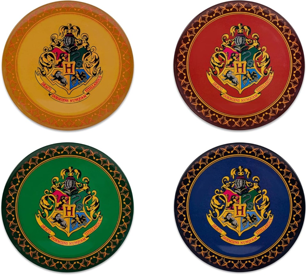 - ENSEMBLE D'ASSISES : Affichez votre passion pour Harry Potter avec ce lot de 4 assiettes en mélamine de 25 cm, ornées du blason de Poudlard, disponibles dans les 4 couleurs des Maisons.