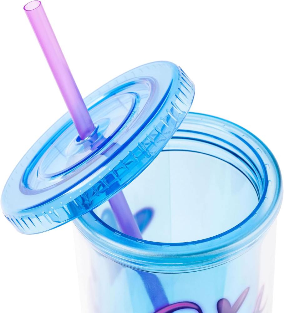 LILO ET STITCH - DISNEY - « 2 CUTE » TASSE FROIDE HAUTE EN PLASTIQUE AVEC COUVERCLE ET PAILLE AVEC POINTS DE SUTURE (591 ML)