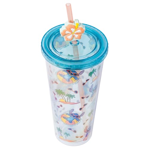 LILO ET STITCH - DISNEY - TASSE FROIDE EN PLASTIQUE "OCEAN PALM"AVEC COUVERCLE ET PAILLE (591 ML)