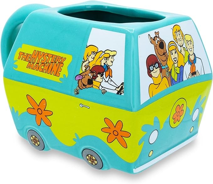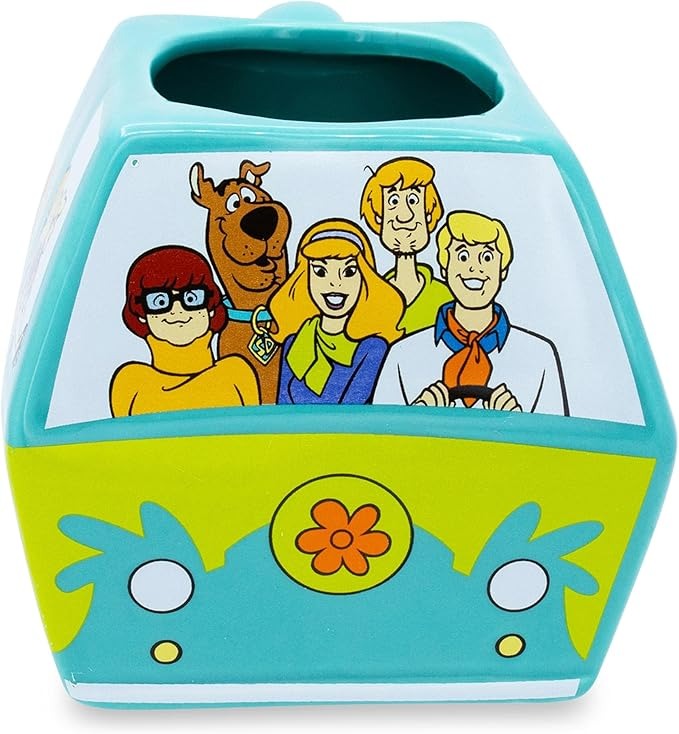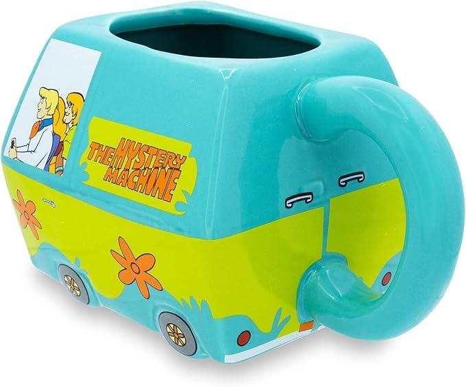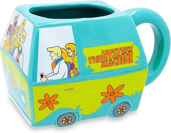 Le Mug céramique Scooby‑Doo Mystery Machine 20 oz de Silver Buffalo est un modèle sculpté unique en forme du célèbre van de la bande, avec la gang Scooby, Shaggy, Velma, Daphne et Fred tels qu’ils apparaissent à bord de la Mystery Machine.. Officiellement licenciée, cette tasse de style « camper » peut contenir jusqu’à 20 onces (≈ 590 mL) de boisson chaude ou froide